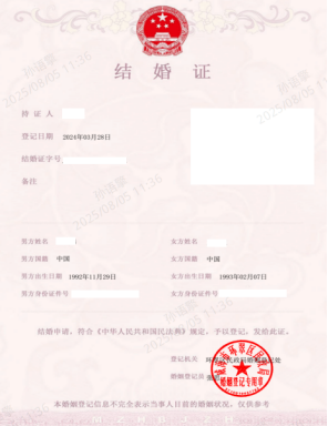 1.内地居民结婚登记:结婚证